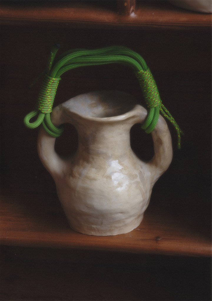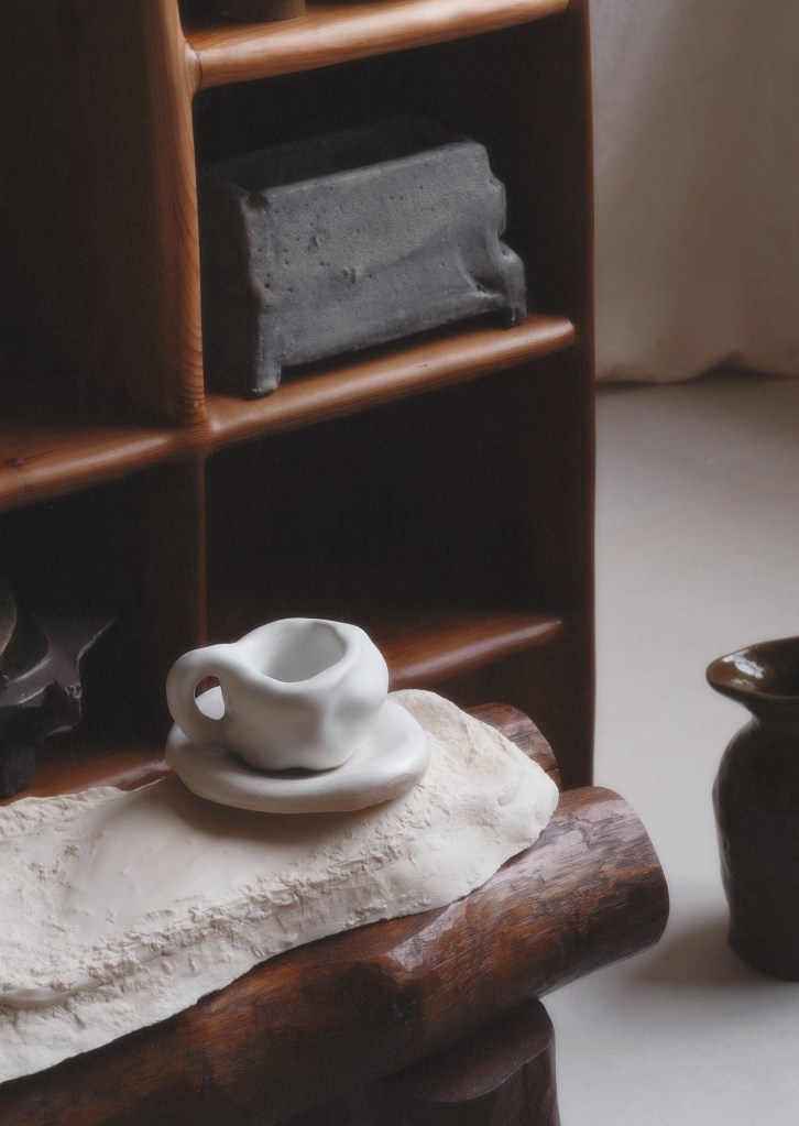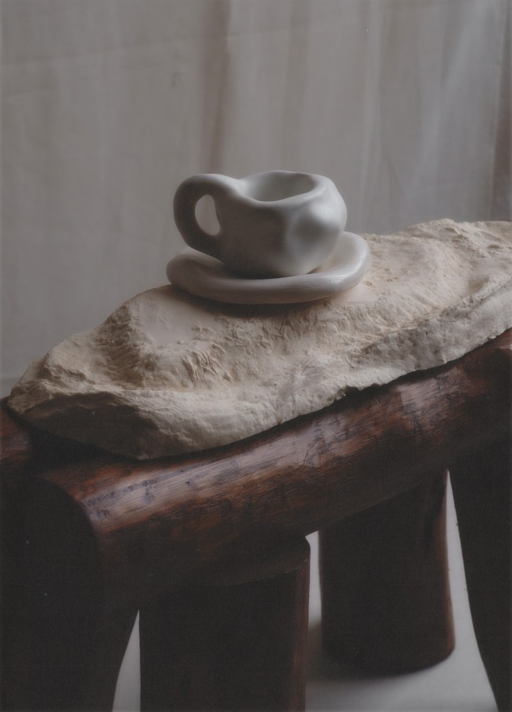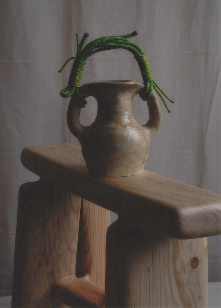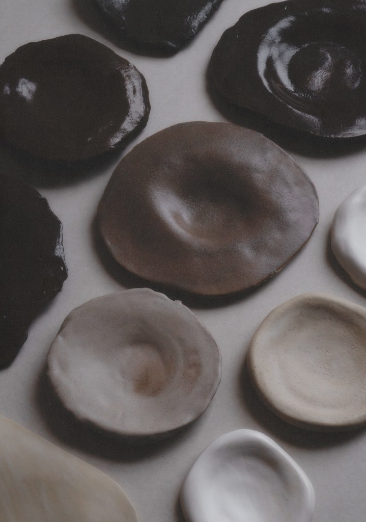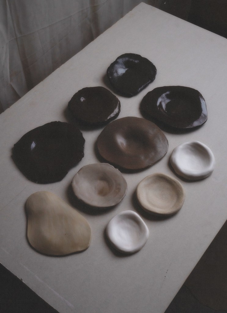 leurs franchises mais je n’arrivais pas encore à exprimer que ce que j’aimais chez elles était la brutalité de la matière, façonnée par le temps, par la terre, quelque chose qui était là avant moi et le sera après.Au quotidien, Thomas travaille le bois et moi la terre, Thomas aime faire des «objets pour d’autres objets», des objets qui permettent de ranger, conserver, exposer. Moi j’aime créer des liens, rassembler, nous aimons tous les deux nous retrouver pour partager, prendre le temps de discuter, de faire évoluer nos pensées, nos doutes, de s’entraider pour nos débuts dans ce métier. Nous avons chacun nos espaces, nos chemins se croisent souvent mais nos projets pas forcément. Ici nous avons souhaiter faire se rencontrer nos sensibilités dans un éloge à la dualité, au rituel, aux souvenirs. »
