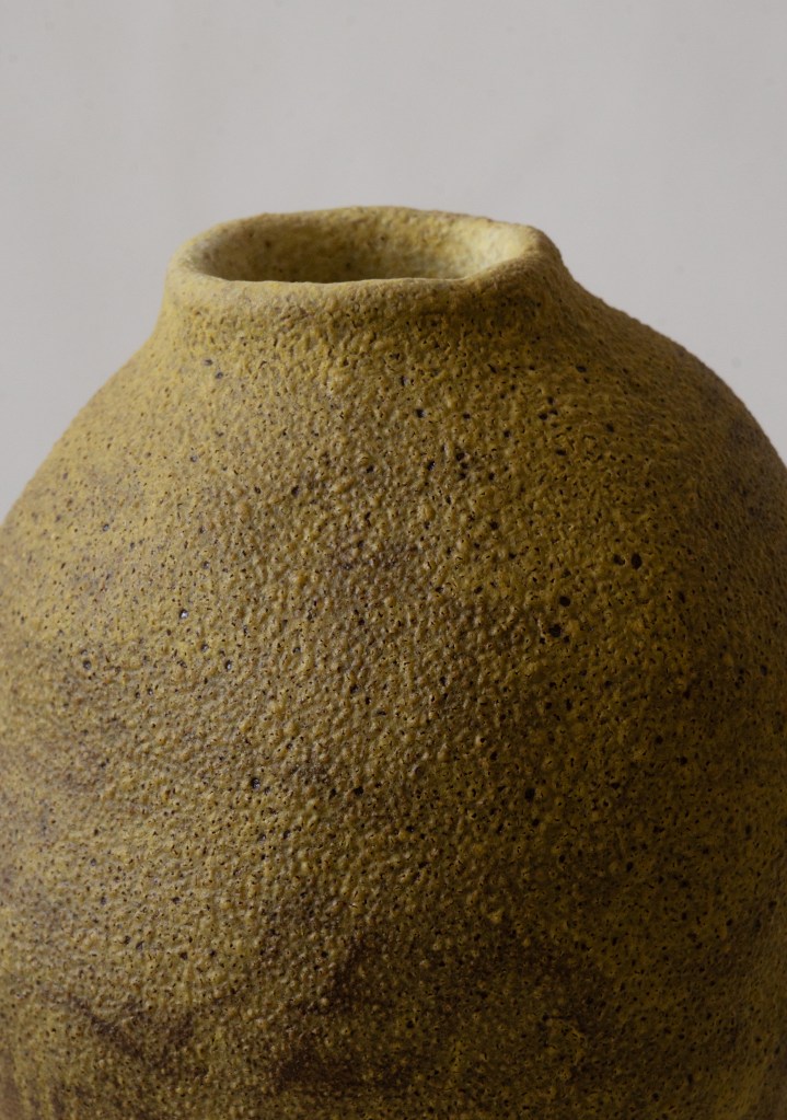 grès chamois, émail jaune mat, 1230°C.