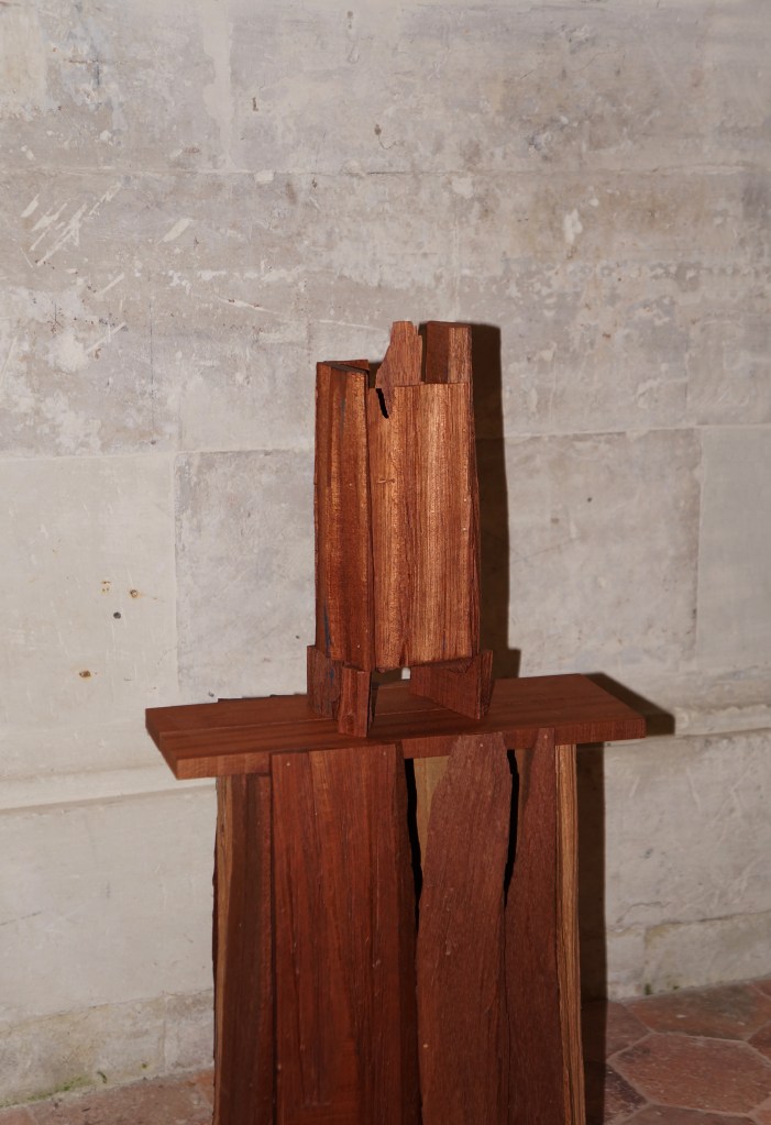Série de six tabourets réalisés pour l’exposition. Mat. bois, essences et dimensions variables, 2023.